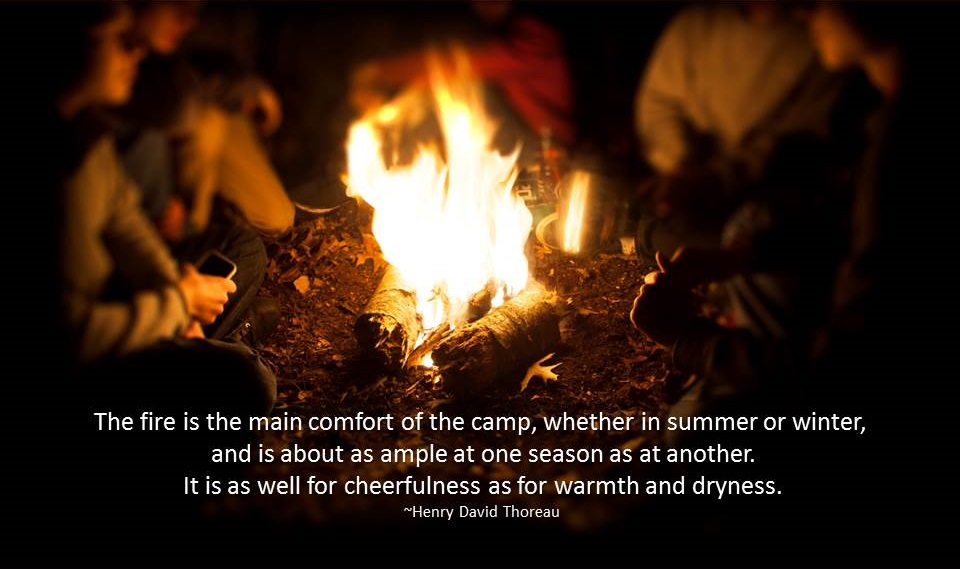 The fire is the main comfort of the camp, whether in summer or winter, and is about as ample at one season as at another. It is as well for cheerfulness as for warmth and dryness. ~Henry David Thoreau